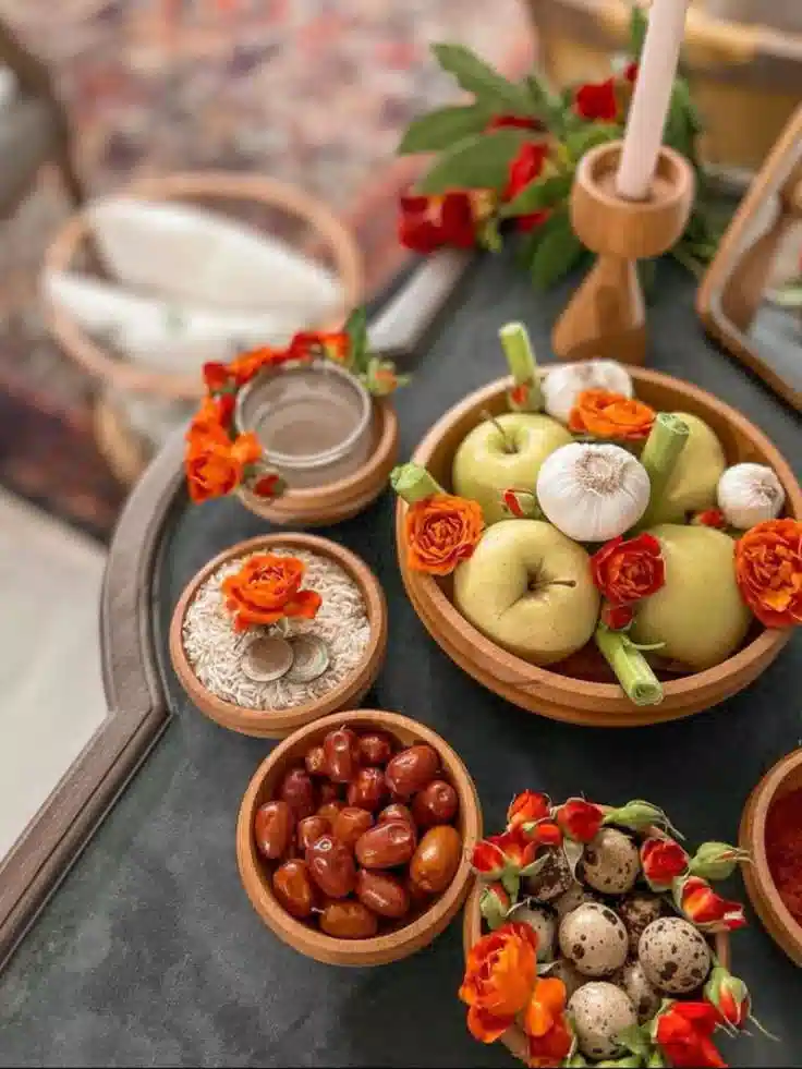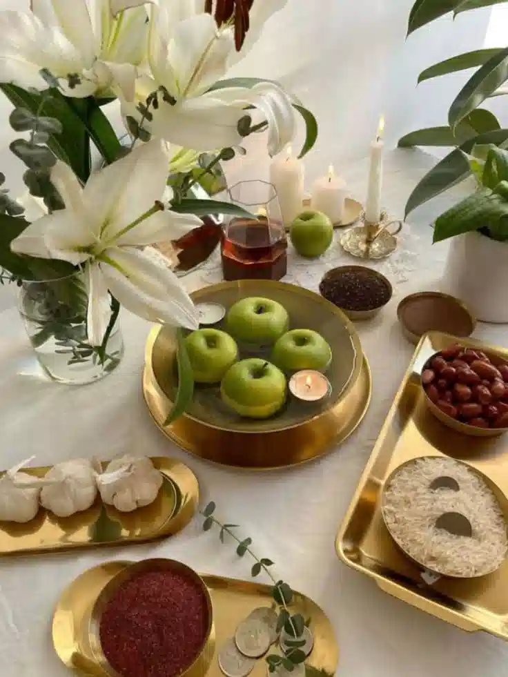 قابهای سنتی، آینه طرحدار و قرآن را در بالا و مرکز سفره قرار دهید