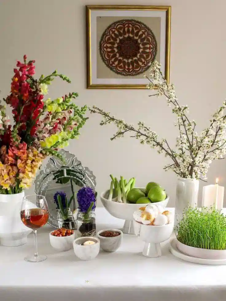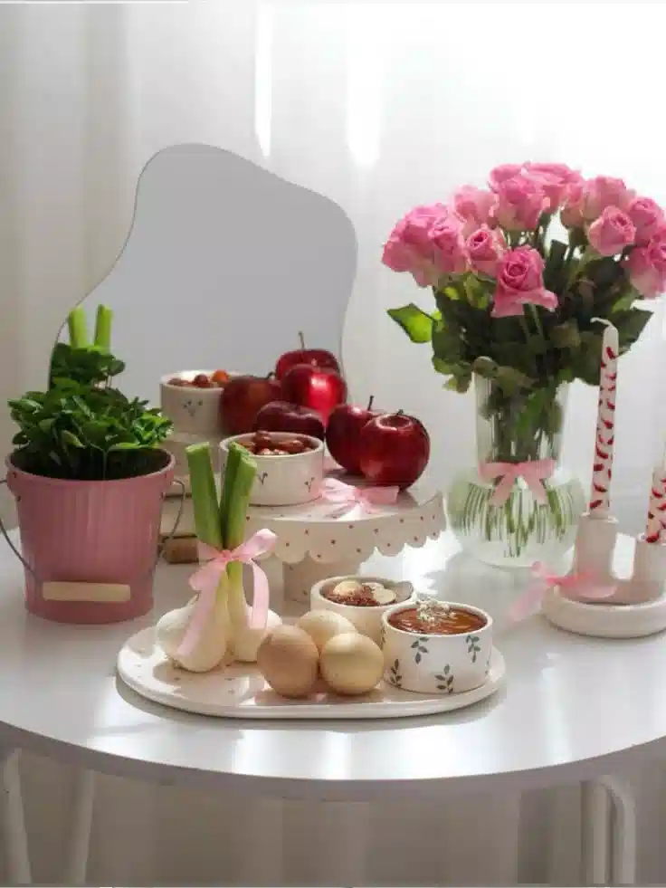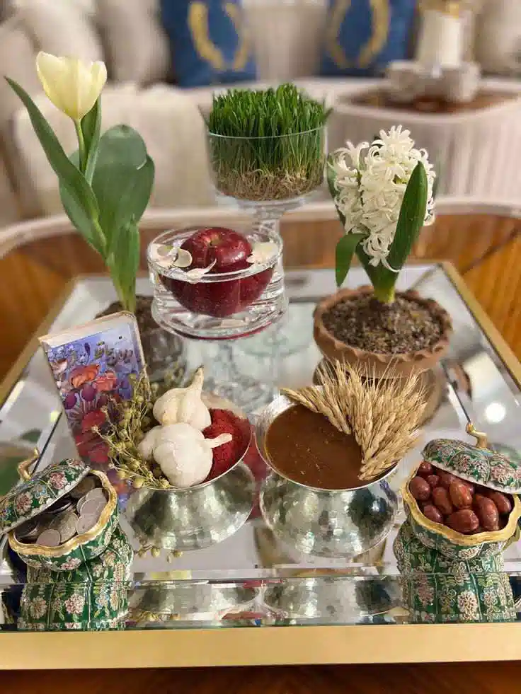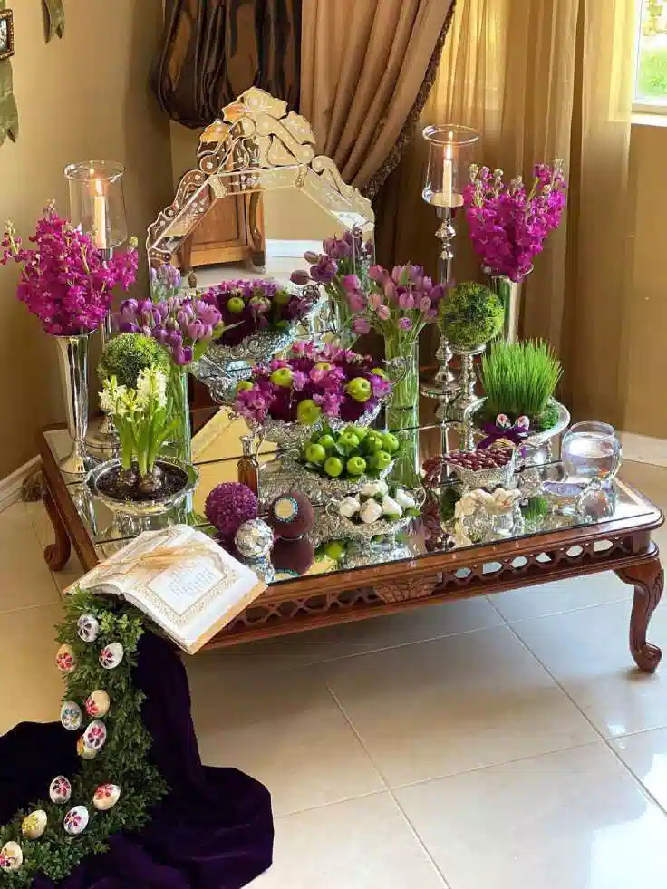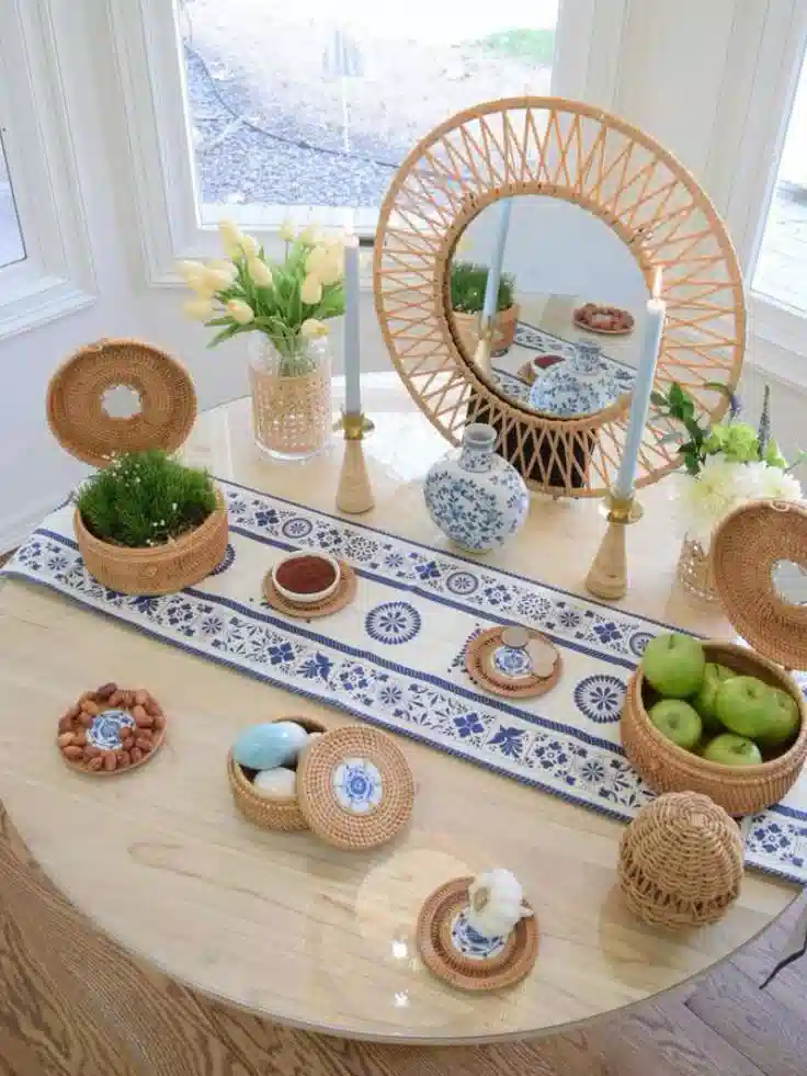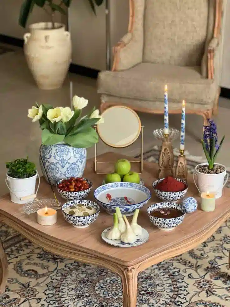 - از میز عسلی کوچک برای چیدمان سفره هفت سین استفاده کنید یا وسایل هفت سین را در گوشهای از میز ناهارخوری یا روی کنسول بچینید.